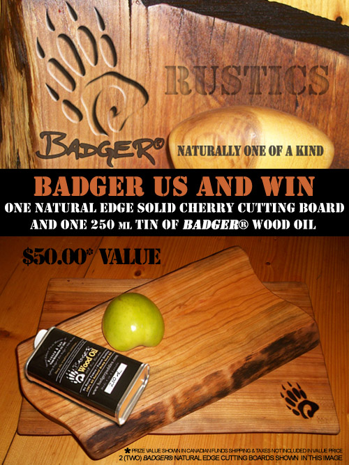 So if you are looking for a great piece for your home or cottage, or are looking for a one-of-a-kind gift for that special person or event, our BADGER® Rustics & Natural Edge Cutting Boards are uniquely perfect for you! Where our rustic paddle racks are ideal for canoeists, our BADGER® Natural Edge Cutting Boards are perfect for just about anyone and for any occasion – including weddings, anniversaries (especially 5th year wedding anniversaries where the traditional gift is wood!), also Christmas’, birthdays, retirements, housewarmings, hostess gifts, and more. Plus an added benefit to our Natural Edge Cutting Boards is each one comes with a 250 ml tin of our Badger® Wood Oil so you can maintain it’s appearance and durability over it’s lifetime.