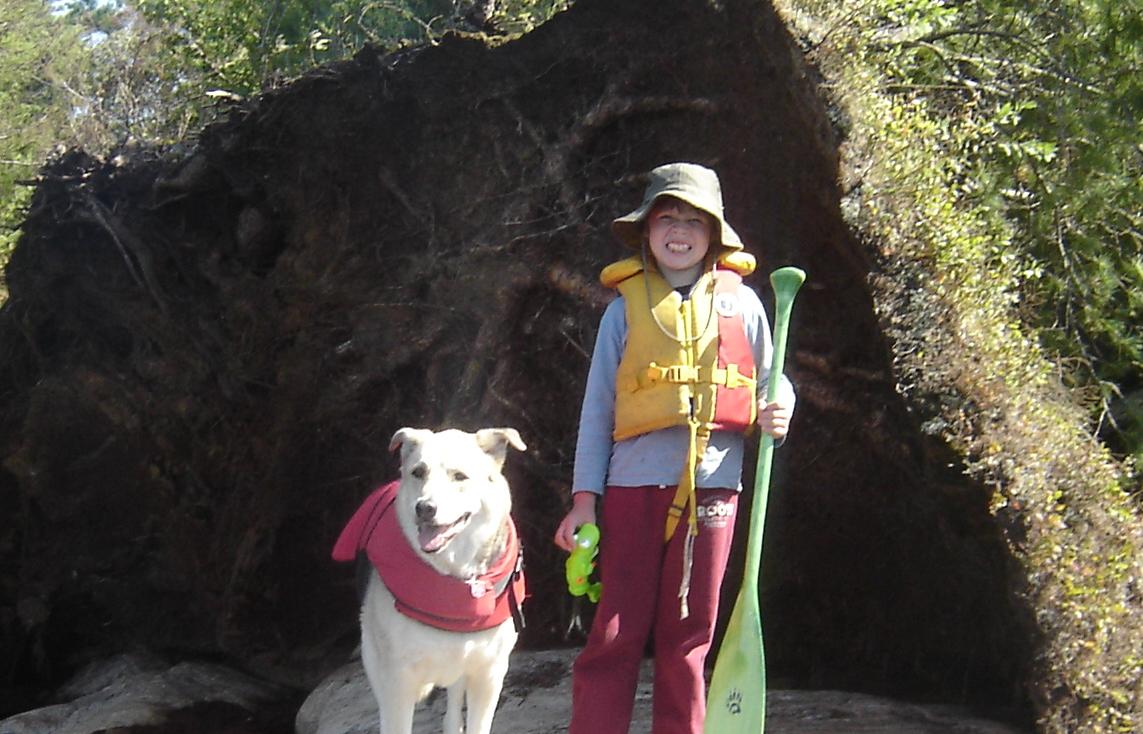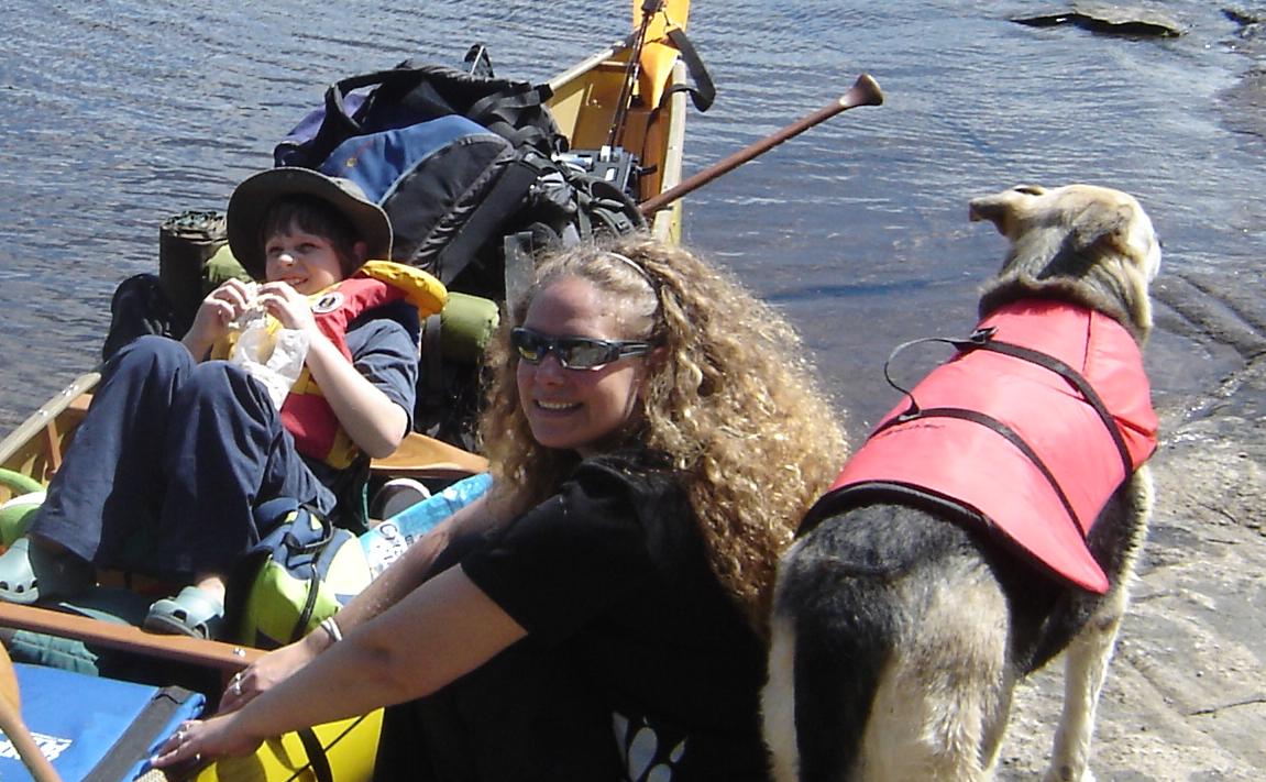 We started with very small trips at first, working up to longer trips until we were able to spend a few hours in a canoe with a bit of motivation (usually a swimming spot) and some edible reinforcement. Later it became naturally reinforcing for him, especially when he could drag his hand in the water as we paddled along. We also provided Makobe with a camp seat (a soft folding chair that is also known as a stadium chair that can be strapped to a canoe seat to keep it in place) so that he was aware visually where he was supposed to sit and to help maintain balance in the canoe. Mike and I have many years experience paddling in canoes and we both lean our boats when soloing so we are aware of a canoe’s balance points, therefore we are both comfortable with Makobe leaning over to trail his hand in the water as we paddle along. Although in some conditions like rough weather or large waves this wouldn’t be possible.