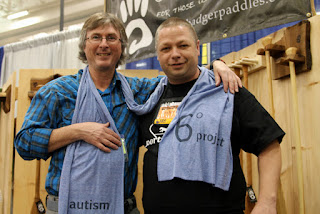 Mike was also excited to meet and see everyone again and to talk paddles and paddling. But there was another subject on his mind as well this year as he had brought with him a blue scarf from The Six Degree Project – which aims to get celebrities to wear their scarves in the name of autism awareness. We had already approached Kevin Callan – The Happy Camper (and Hap Wilson!) who (both!) agreed to help bring awareness and attention to autism for the next little while as totally willing participants.